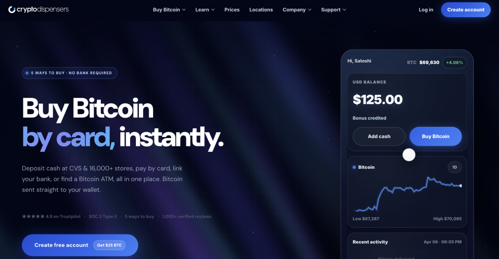 Fees are comparable, often including spreads of around 5% or higher, depending on the method. Coinme also offers debit card purchases via its app, but Crypto Dispensers does not consistently support them.